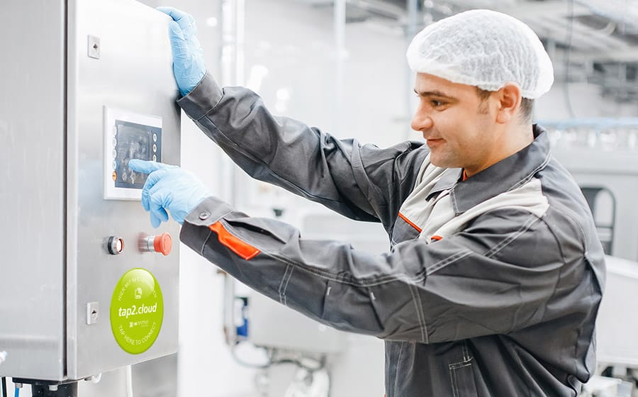 Mit dem tap2.cloud SmartButtn geht das ganz einfach: SmartButtn mit RFID/NFC-Tag an der gewünschten Stelle anbringen und schon ist die Maschine mit dem Internet verknüpft.